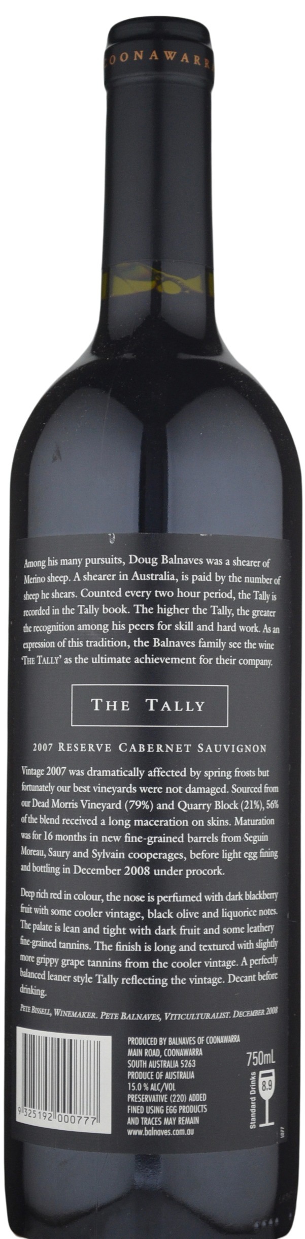 Balnaves of Coonawarra The Tally Reserve Cabernet Sauvignon 2007 (✔in stock) | Cellarit