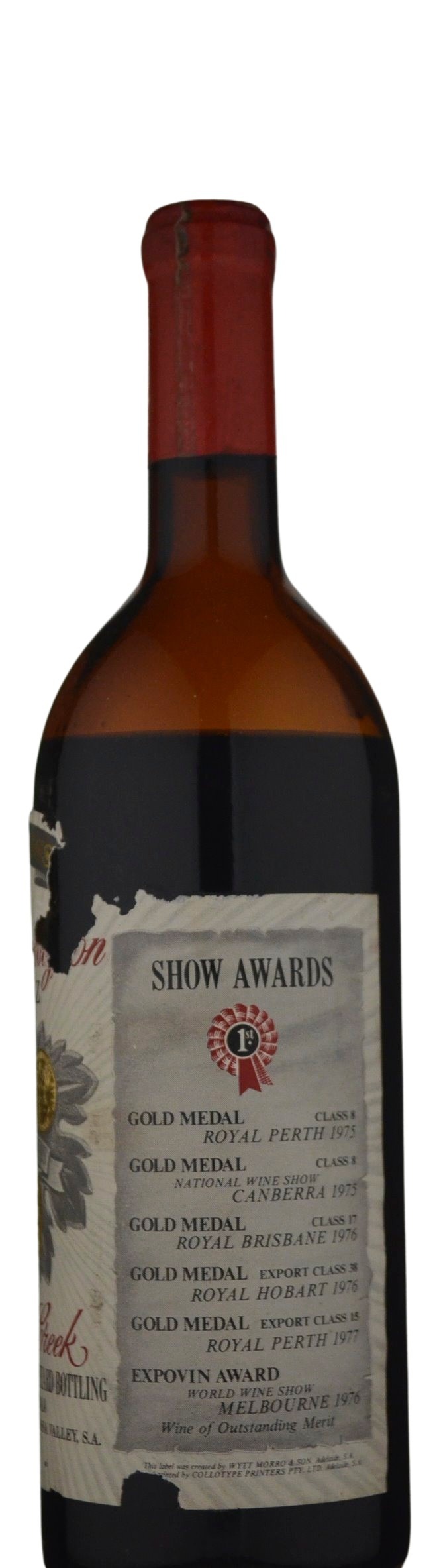 Label: slightly cellar damaged, Capsule: corroded (hole), evidence of leakage, Ullage: below mid shoulder