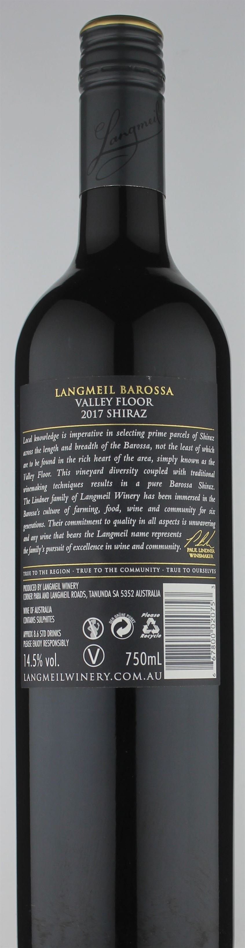 A deeply-coloured shiraz made in the classic big-flavoured, oak-influenced Barossa style, but without excesses. Ripe, earthy aromas of dark berry and plum-like fruit are touched by hints of sweet spices, mint and a good measure of high-toned, vanillin oak. It's medium-bodied, intense in flavour and well-balanced by lively acidity and measured tannins, finishing long with a light, minty fragrance