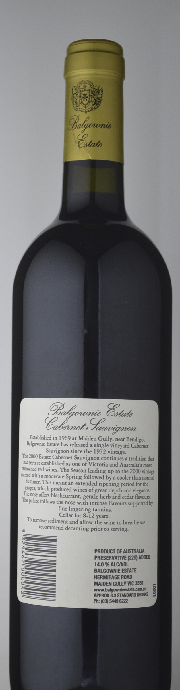 Medium to full red-purple; the bouquet has blackberry and blackcurrant fruit with well integrated oak, the palate marvellously sweet and rich, without being heavy, over-extracted or tannic; here blackberry, blackcurrant and a touch of chocolate all come together in an excellent wine. Drink to 2015.