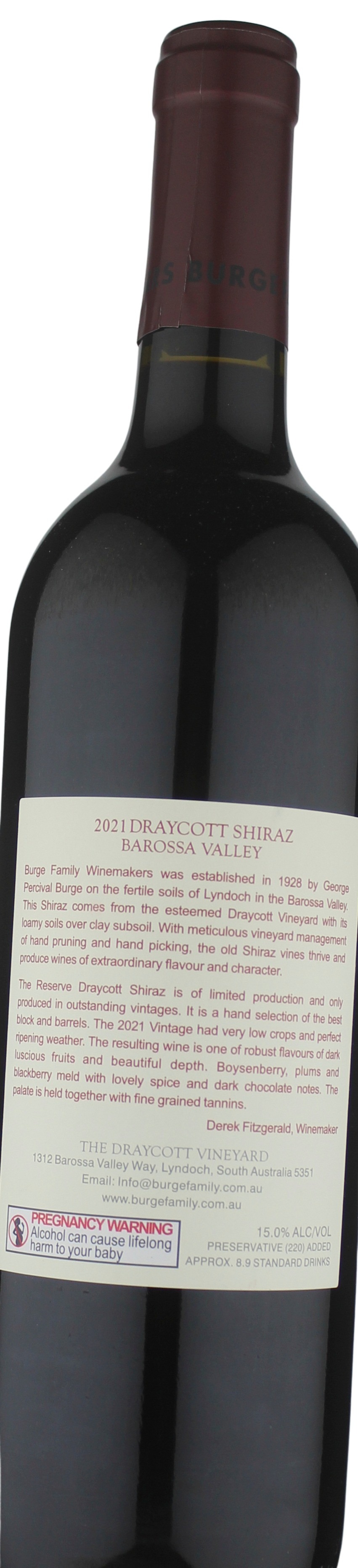 Burge Family Winemakers Draycott Reserve Shiraz 2021 » $200.00 (✔in stock) | Cellarit