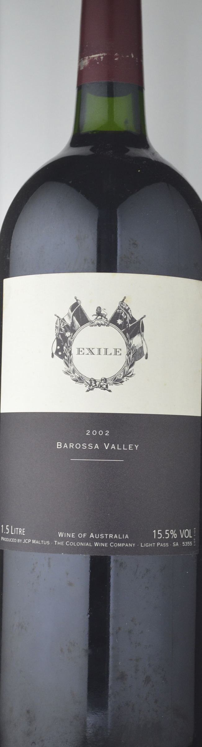 Even more intense than the 2003, the 2002 Exile is a superb example of this fabulous vintage in Barossa. Black/purple-colored with sensational purity, a blackberry liqueur, cassis intensity, and beautifully integrated wood, alcohol, and tannin, this large yet brilliantly balanced effort can be drunk now, but promises to age effortlessly for 10-15 years.