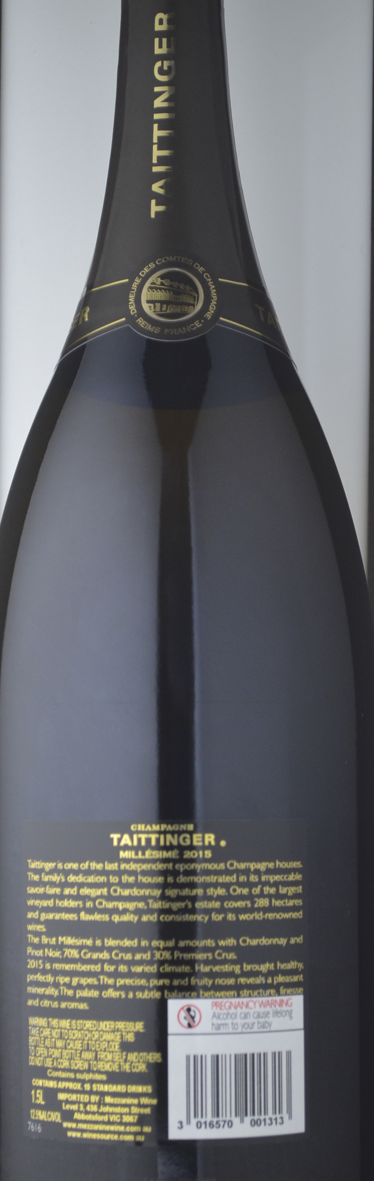 Taittinger Millesime Brut Champagne 2015 1500ml » $329.00 (✔in stock) | Cellarit