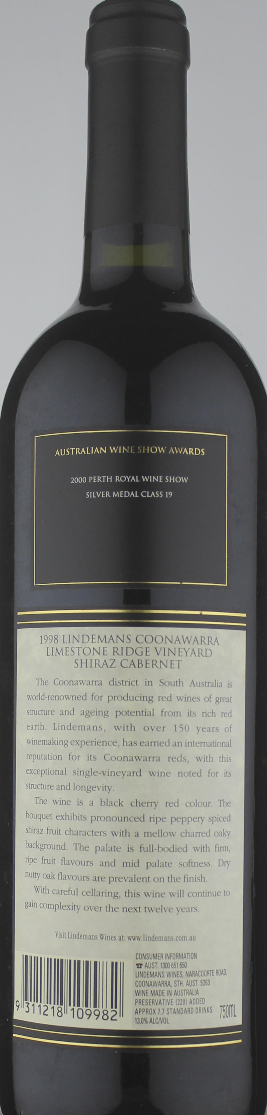 Lindemans Limestone Ridge Vineyard Shiraz Cabernet 1998 » $75.00 (✔in stock) | Cellarit