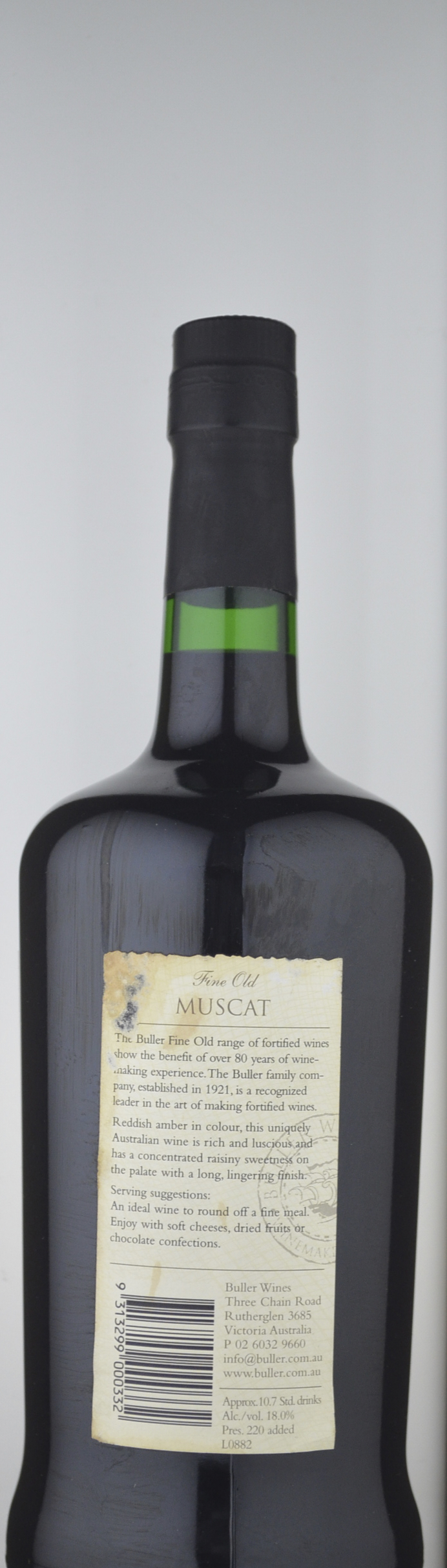 Medium red/tawny with an amber rim. Very appealing muscat fragrance with some mellow complexity and character, reflecting some aged material in the blend. Rich and loaded with character, very sweet for sure, but not overdone. A lovely liqueury wine, good as a drink or on icecream.
