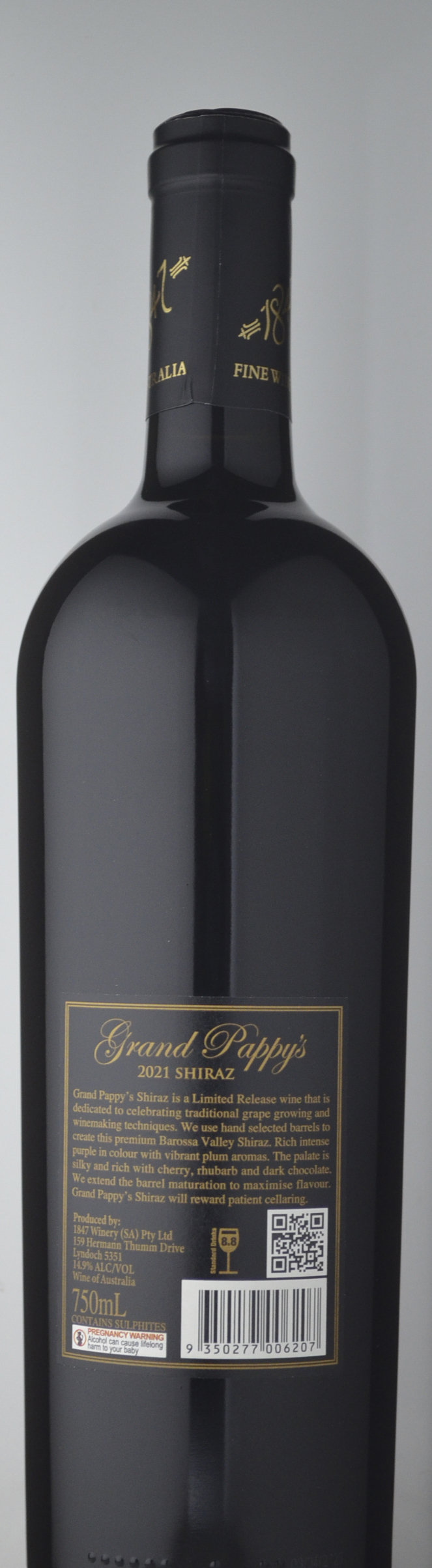 1847 Winery Grand Pappy's Shiraz 2021 » $119.00 (✔in stock) | Cellarit