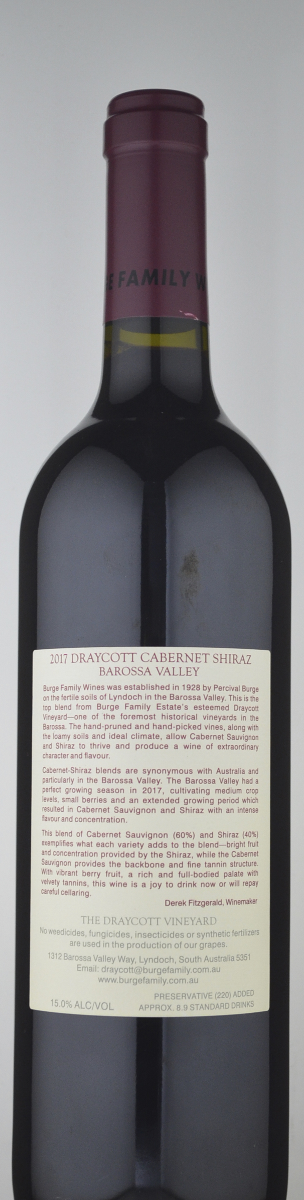 Burge Family Winemakers Draycott Cabernet Shiraz 2017 » $65.00 (✔in stock) | Cellarit