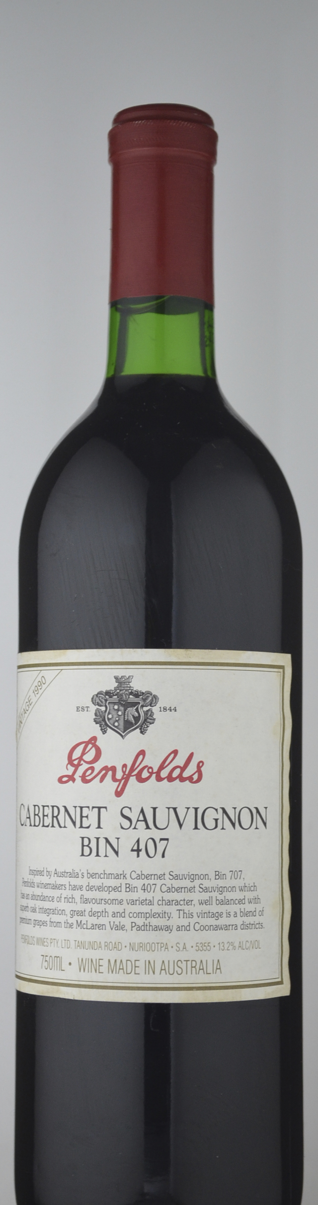 The first vintage of 407. McLaren Vale, Padthaway, Coonawarra. Desne, developed and appelaing red which is still showing good berry primary fruit flavours together with savoury toast, forest floor and Bovril complexity. Impressive wine in a fairly ""tradtional"" style. Rich and tarry.
