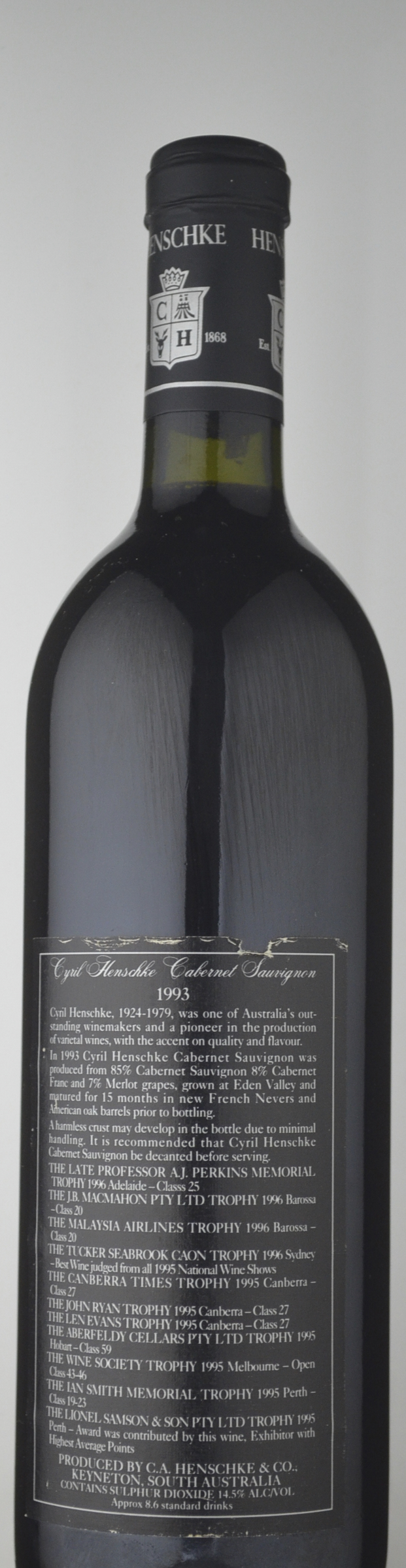 Medium to full purple-red; a potent and intense bouquet with cassis tinged with olive in classic Cabernet fashion; well-balanced and integrated oak. A glorious wine on the palate with wonderful fruit ranging through cassis to raspberry; impeccable oak handling and a very long, perfectly balanced finish. Deserves all its innumerable trophies. Drink to 2008.