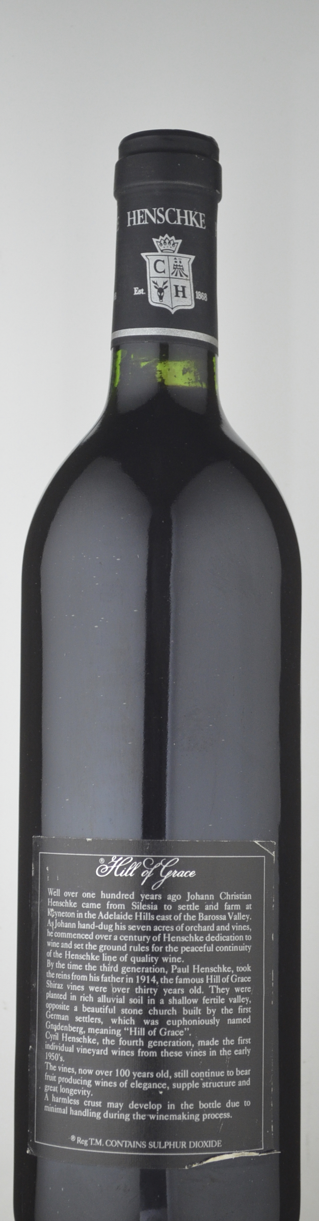 The 1988 Hill of Grace is medium deep brown in color and replete with earthy and leathery aromas marred by a touch of rancio /aldehydic notes that seem to recover after a few minutes and show some treacle and Indian spice hints. It is an interesting wine, though just a bit flat and tired on the palate with of medium level chewy tannins, crisp acid and a good length on what remains of the fruit. It is mature. Source: Robert Parker (Wine Advocate) April, 2013 by Lisa Perrotti-Brown