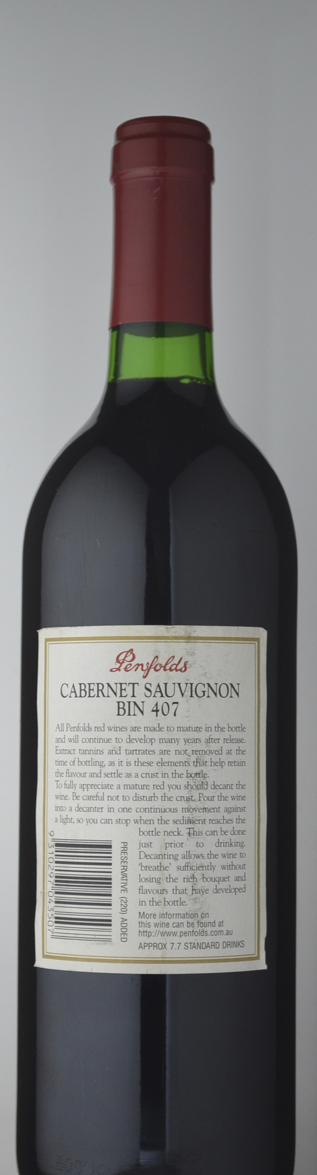 Penfolds Bin 407 Cabernet Sauvignon 1995 (✔in stock) | Cellarit