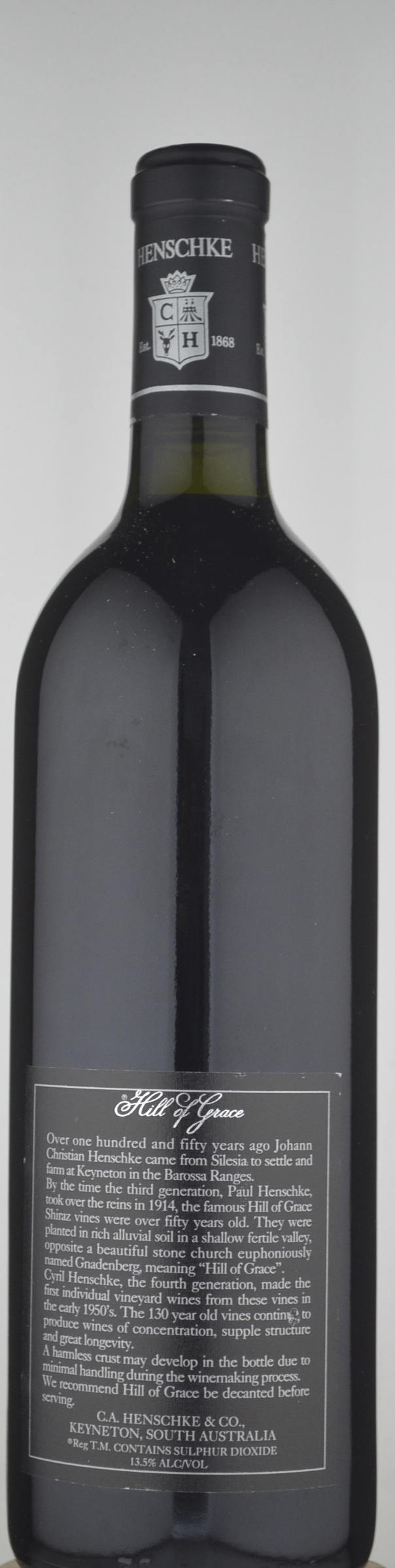 Deep brown-brick in color, the 1991 Hill of Grace offers intensely scented notes of warm black fruits, Chinese dried plums, dark chocolate-covered cherries and licorice. It is very pure, full-bodied and rich in the mouth, with profound and seductive flavors, a great backbone of crisp acid and firm, finely-grained tannins through the long finish. It is mature now but no rush to drink.