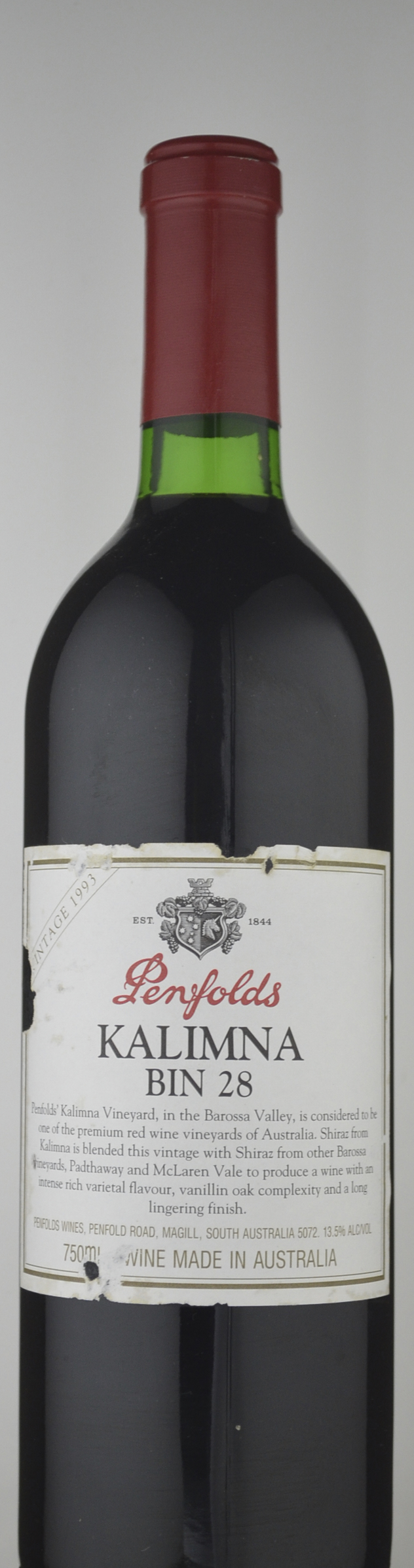 Another knock-out value from Penfolds is the 1993 Calimna Shiraz Bin 28. The dark ruby/purple color is followed by copious aromas of toasty American oak intermingled with jammy black fruits (particularly raspberries). Subtle green pepper notes are detectable in this flavorful, well-crafted, rich, medium-bodied, stylish Shiraz. Drink it over the next 5-6 years. Importer: PWG Vintners, USA, Inc., Monterey, CA; tel. (408) 655-4848Source: Robert Parker (Wine Advocate) April, 1997 by Robert Parker