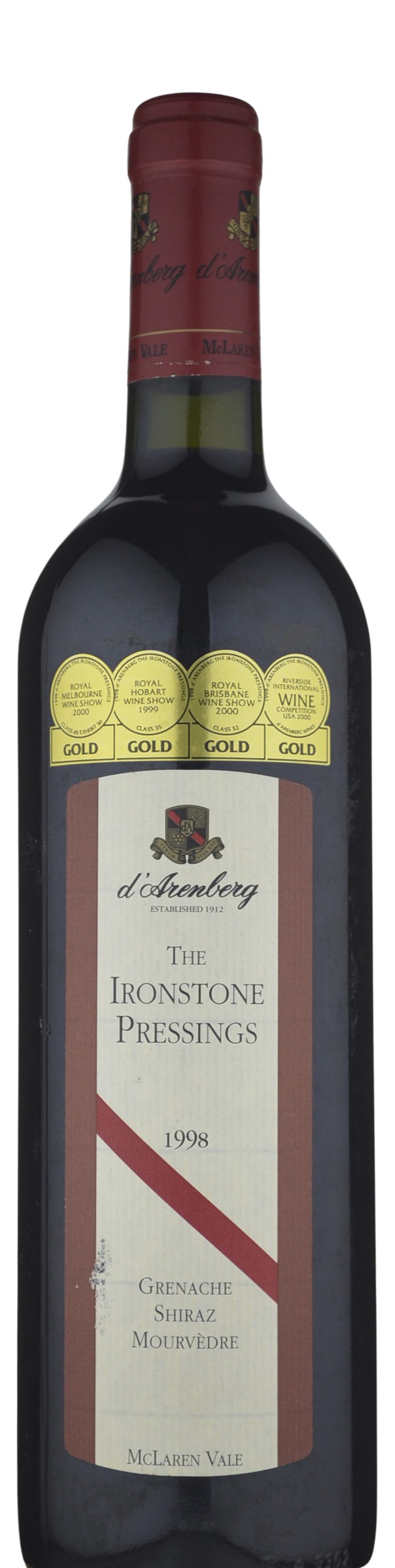 The 1998 The Ironstone Pressings (70% Grenache, 20% Shiraz, and 10% Mourvedre) is a powerful, dense, thick, slightly monolithic effort with copious amounts of blackberry fruit, huge body, and the potential to evolve for two decades. Even though it had been in the bottle for some time when I tasted it, it was still unformed. With silky tannin, explosive richness, and potentially top-flight perfume, it will have many admirers after another six months of bottle age. It should last for 15 years.Source: Robert Parker (Wine Advocate) June, 2001 by Robert Parker