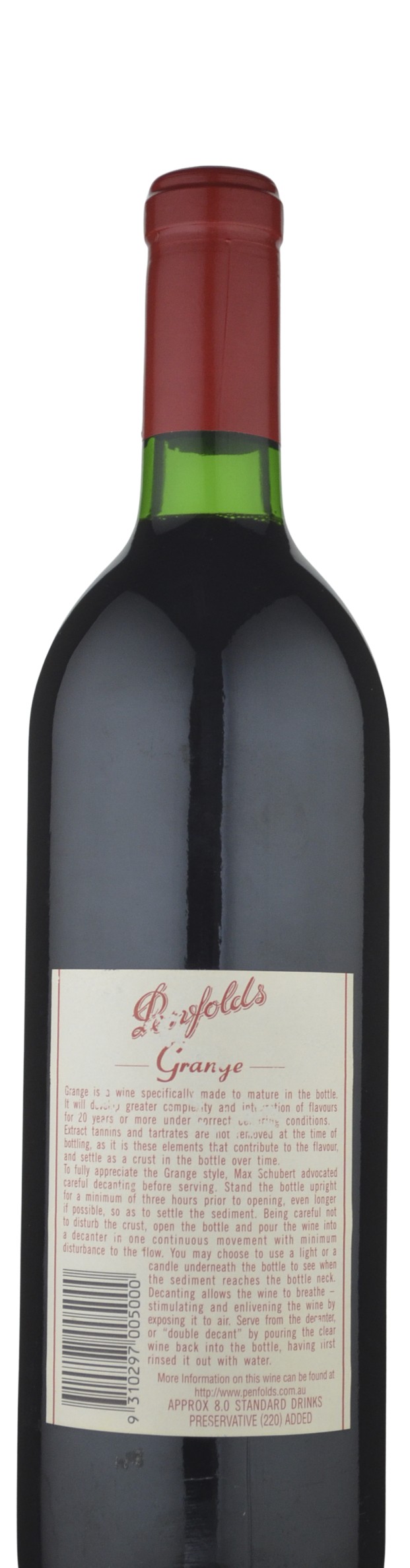 This is a very aromatic Grange that seems to be the product of a vintage where the wines are showing extremely well young. It is dense purple, with a sweet blackberry/cherry nose and some subtle cedar and licorice in the background, unctuously textured, thick, full, without as many nuances of some of the greatest vintages of Grange, but very concentrated and dense. Anticipated maturity: now-2017.Source: Robert Parker (eRobertParker.com) February, 2002 by Robert Parker