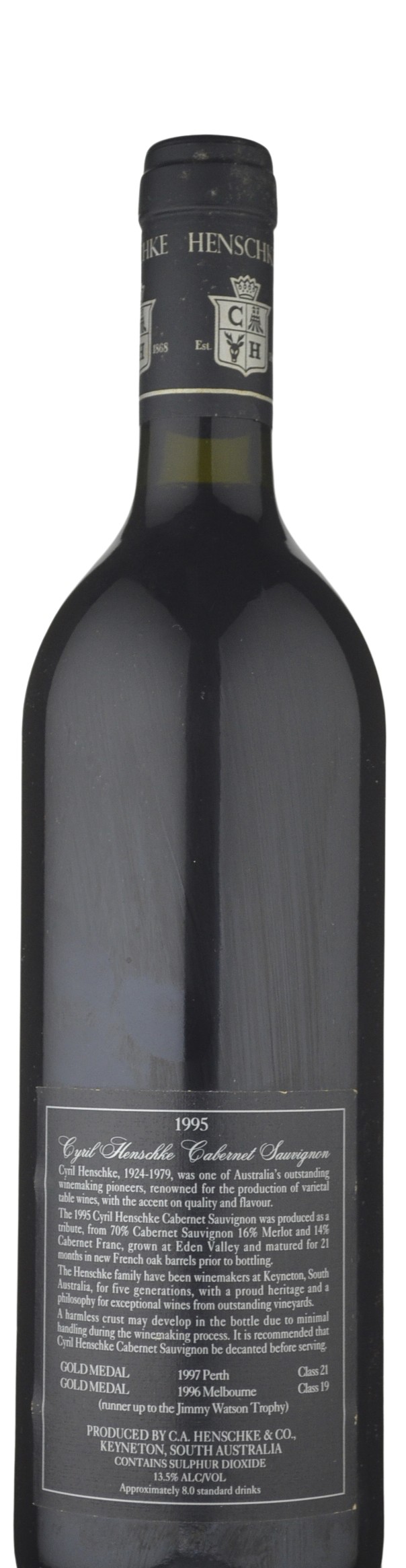 Medium to full red-purple; the charry oak which is evident in the other Henschke '95 wines, but which seems better-suited there, seems to bite somewhat on both the bouquet and palate of this wine. The palate flavours are of mint, red berry and leaf; again, a wine which seems distinctly off the pace of the best vintages. Drink to 2006.