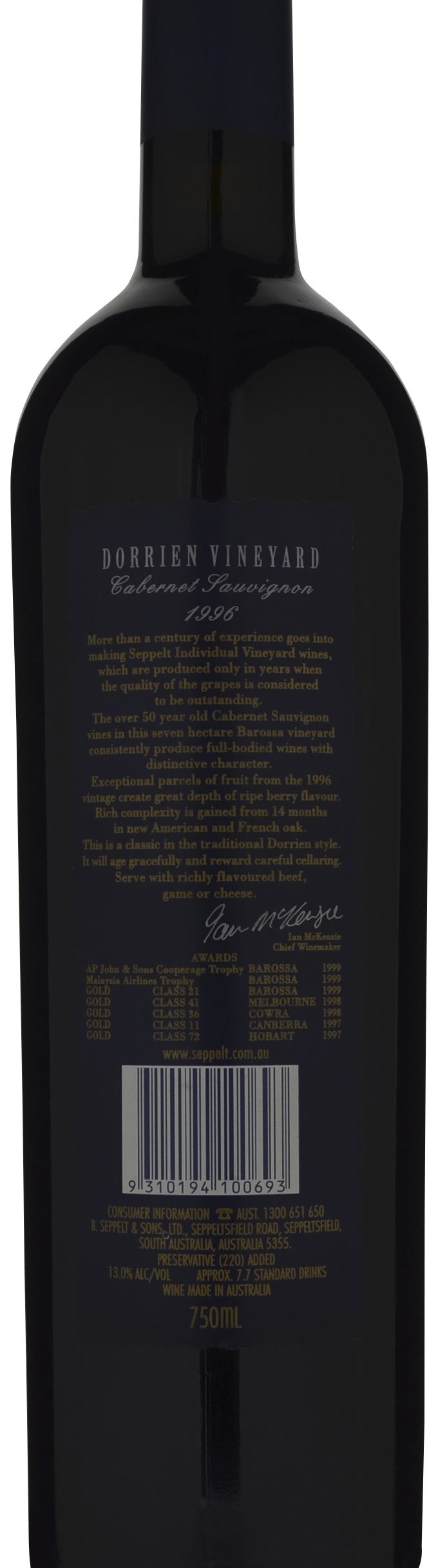 Seppelt Dorrien Vineyard Cabernet Sauvignon 1996 » $139.90 (✔in stock) | Cellarit