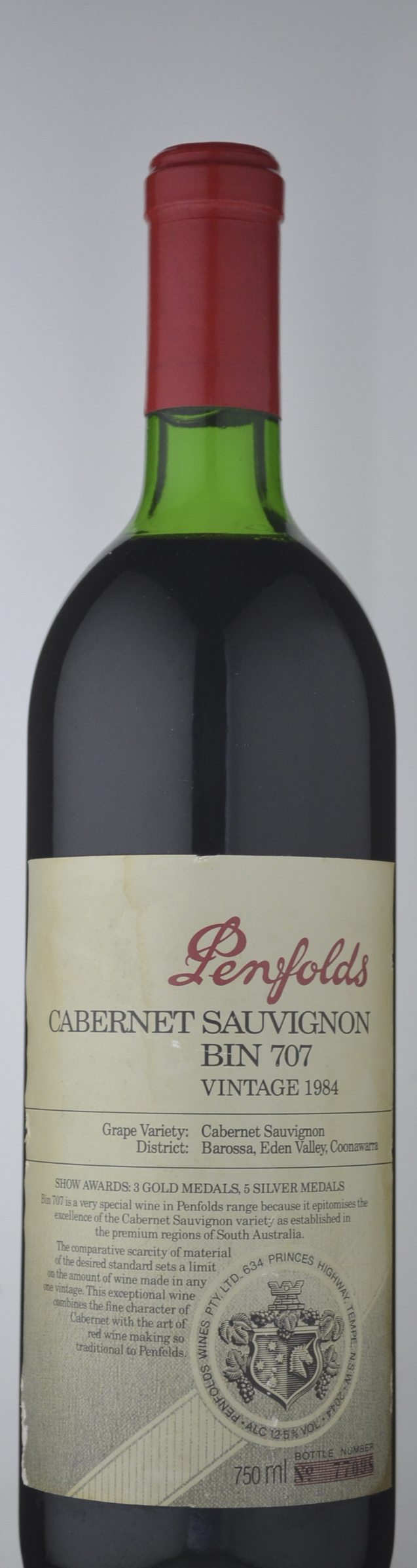 Named by an ex-Qantas marketer, Bin 707 was first vintaged in 1964. The wine was not made from 1970 to 1975 when fruit was directed to other wines, nor in 1981, 1995, 2000 or 2003 (when fruit of the required style and quality was not available). Fullbodied and with proven cellaring potential, Bin 707 has a secure place among the ranks of Australia's finest Cabernets."
