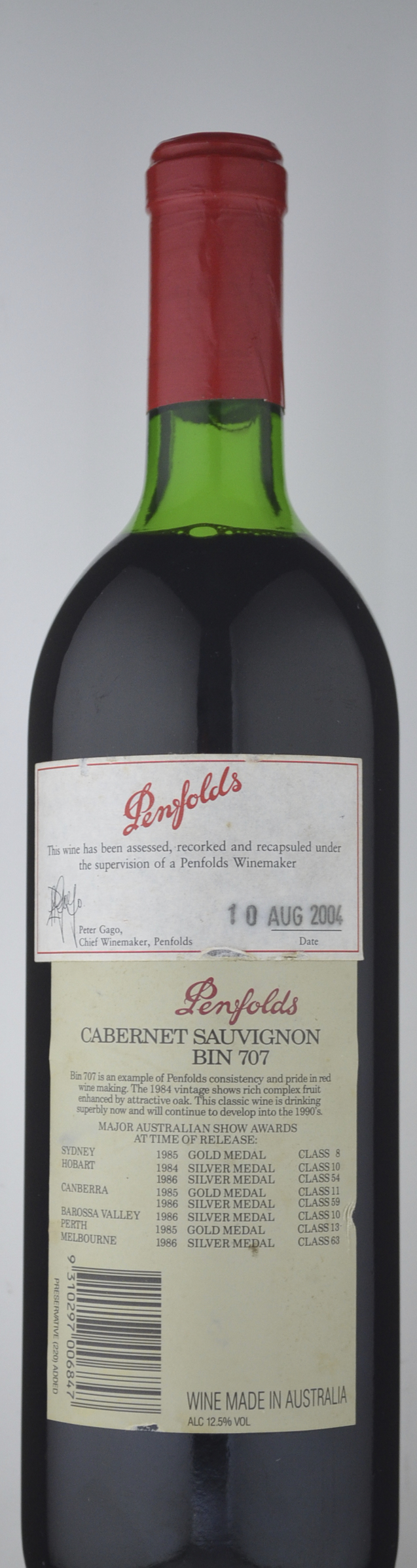"Bin 707 is Penfolds' Cabernet Sauvignon version of Grange: ripe,intensely-flavoured fruit; completing fermentation and maturation in new oak; fully expressing a Penfolds understanding of multi-vineyard, multi-region fruit sourcing.