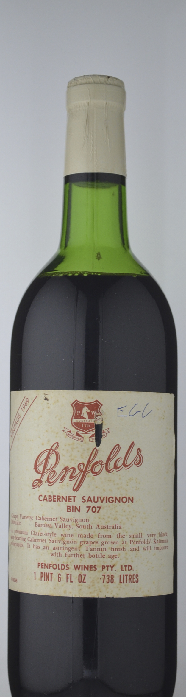 Label: slightly cellar damaged, Capsule: damaged, Ullage: high shoulder