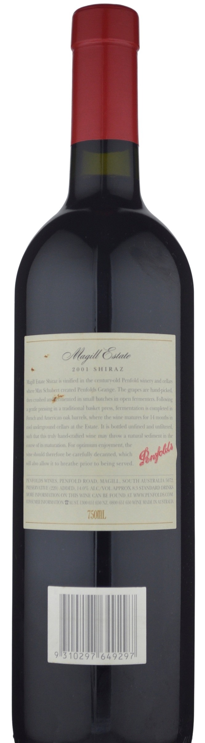 The 2001 Shiraz Magill Estate, which is meant to be one of Penfolds’ flagship offerings, offers a shy but enticing aromatic display of flowers, black fruits, forest floor, and wood. Elegant, medium-bodied, not terribly concentrated flavors once again display a certain acidic edge that is unnatural. Nevertheless, the quality and purity of the fruit, the pleasant aromatics, and the intrinsic qualities that have not been totally obliterated by acid obsessed oenologists pull the wine through, but one wonders what it could have been? Drink it over the next 5-7 years. Source: Robert Parker (Wine Advocate) October, 2004 by Robert Parker
