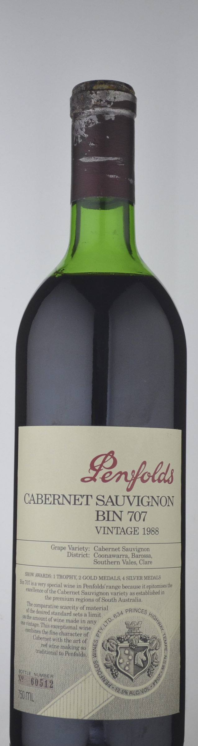 "Bin 707 is Penfolds' Cabernet Sauvignon version of Grange: ripe,intensely-flavoured fruit; completing fermentation and maturation in new oak; fully expressing a Penfolds understanding of multi-vineyard, multi-region fruit sourcing.