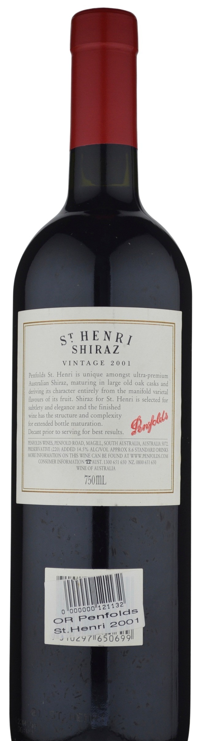 The deep ruby/purple-hued 2001 Shiraz St. Henri offers sweet aromas of raspberries and flowers. This accessible, concentrated, medium-bodied, impeccably-balanced Shiraz possesses excellent fruit as well as background earth and wood notes. Consume it over the next 10 years.