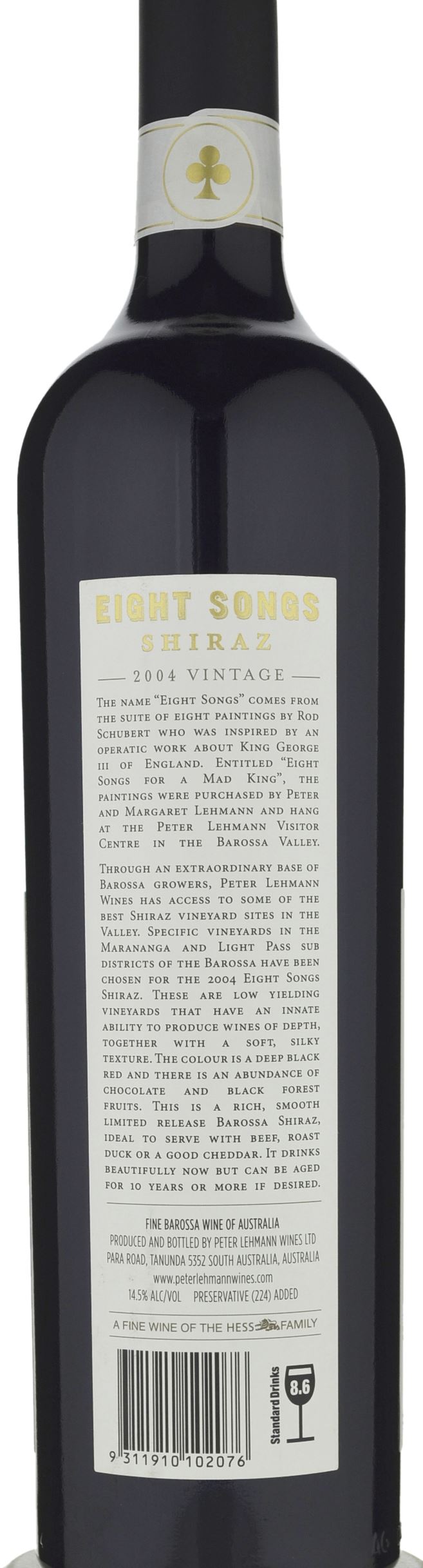 Peter Lehmann Eight Songs Shiraz 2004 (✔in stock) | Cellarit