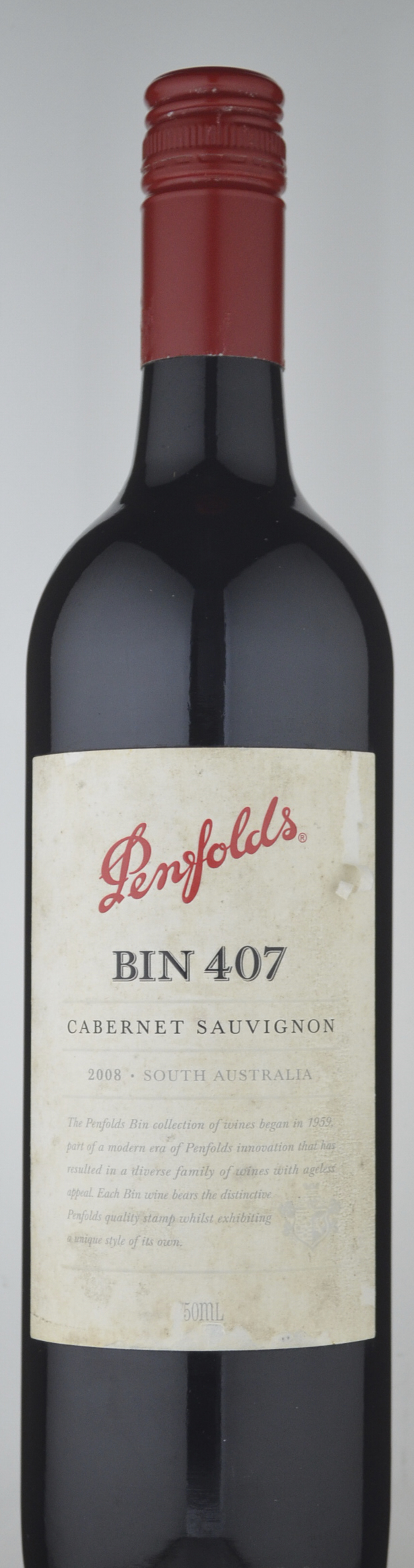 The 2008 Bin 407 Cabernet Sauvignon gives a deep garnet-purple color and aromas of ripe cassis, black currant cordial, dark chocolate, black truffles and black olives. Full bodied with a good amount of muscular fruit, it has a firm level of chewy tannins, very crisp acidity and a long, ripe cassis laced finish. Drink it now to 2018+. Source: Robert Parker (eRobertParker.com) February, 2012 by Lisa Perrotti-Brown