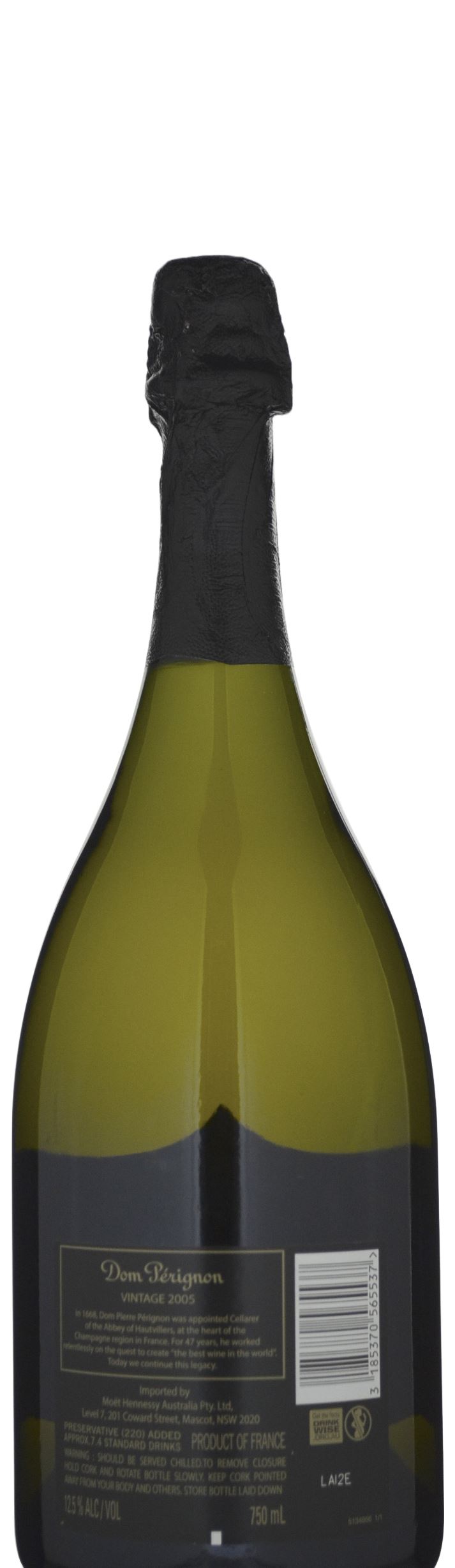The 2005 Dom Pérignon has a brilliant white-golden color and is intense on the yeasty nose, where vegetal aromas along with almond and rather discreet fruit flavors are displayed, before they intensify and become more rich. Firm, fresh and elegant, this is a full-bodied, complex and pretty rich, well concentrated and creamy-textured DP with a tightly woven structure; it has a still somewhat edgy finish. There is bit more Pinot Noir than usual in this blend, whereas the produced quantity is relatively low. Due to strict selections, just the half of the normal quantity was produced.
