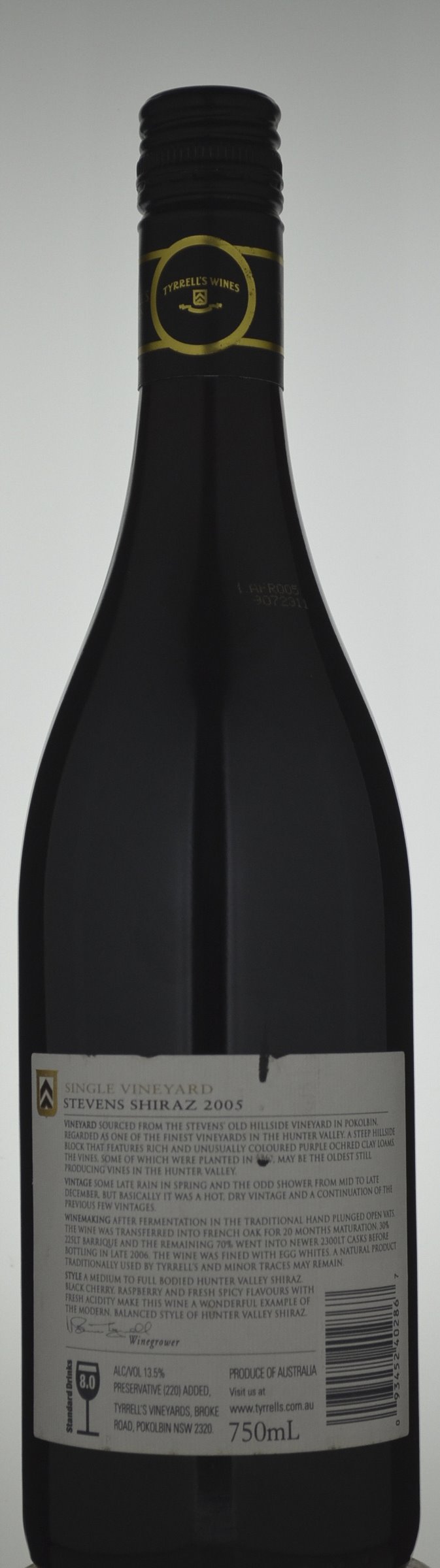 Tyrrell's Wines Single Vineyard Stevens Shiraz 2005 (✔in stock) | Cellarit