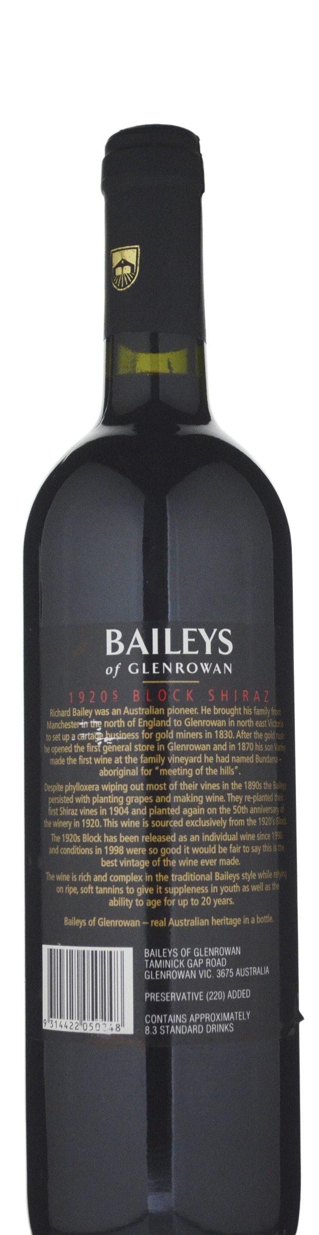Baileys Of Glenrowan 1920s Block Shiraz 1998 » $125.00 (✔in stock) | Cellarit