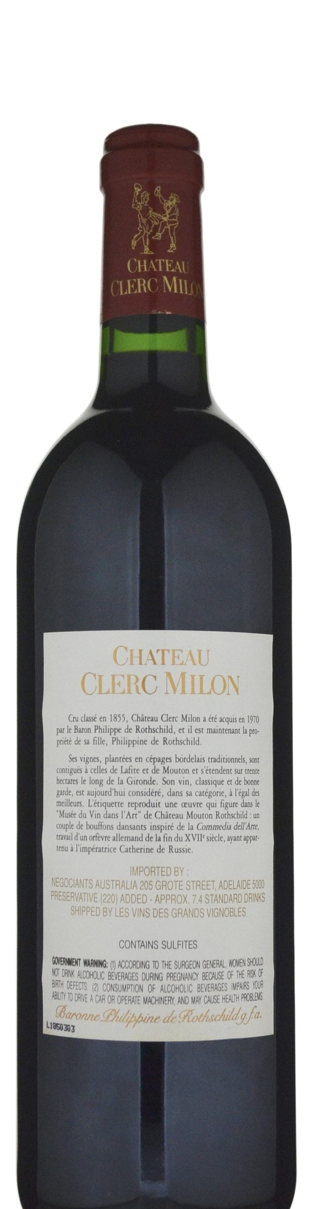 The 1995 Clerc-Milon, a 56% Cabernet Sauvignon, 30% Merlot, 14% Cabernet Franc blend, reveals more tannin and grip than the 1996 (ironically, the 1995 has more of a 1996 vintage character, and vice versa for the 1996). This attractive dark ruby/purple-colored wine has impressive credentials, and may merit an outstanding score with another year or two in the bottle. It offers a gorgeous nose of roasted herbs, meats, cedar, cassis, spice, and vanillin. This dense, medium to full-bodied wine possesses outstanding levels of extract, plenty of glycerin, and a plush, layered, hedonistic finish. A luscious, complex wine, it reveals enough tannin and depth to warrant 15 or more years of cellaring. Anticipated maturity: 2002-2015. A sleeper.