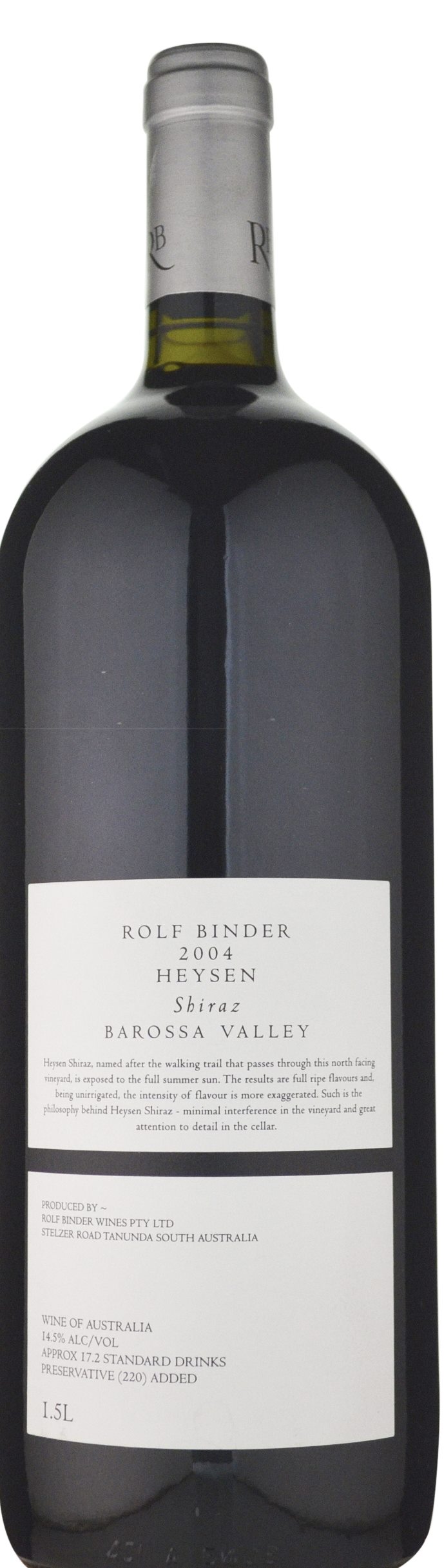 The backward 2004 Shiraz Heysen, aged 20 months in a combination of American and French oak, possesses a dense purple color as well as rich notes of blackberries, licorice, creosote, and camphor. This dense, full-bodied, ripe, powerful Shiraz includes 5% Cabernet Sauvignon, which is impossible to detect. Give it 2-3 years of cellaring and drink it over the following 12-15+.