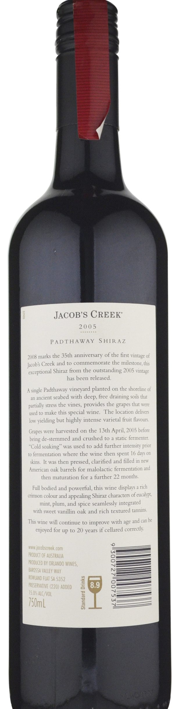 Jacob's Creek Limited Release 35th Anniversary Padthaway Shiraz 2005 » $129.90 (✔in stock) | Cellarit