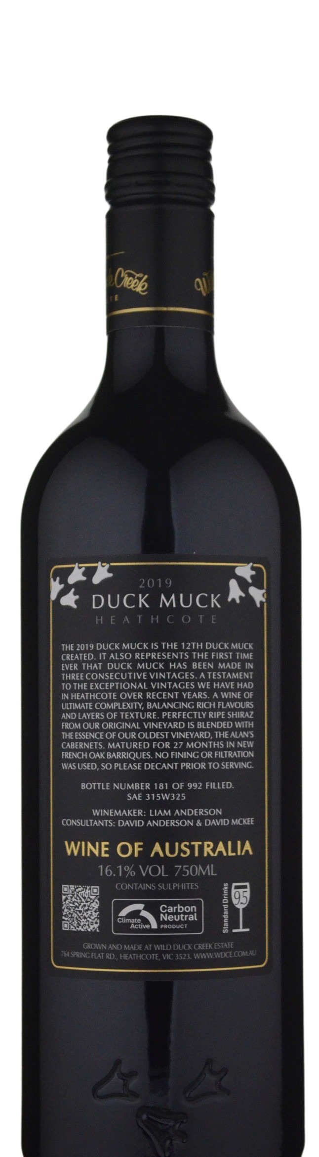 The 12th vintage of Duck Muck. A miniscule volume was bottled, 992 bottles in fact. Dark red at its core, it