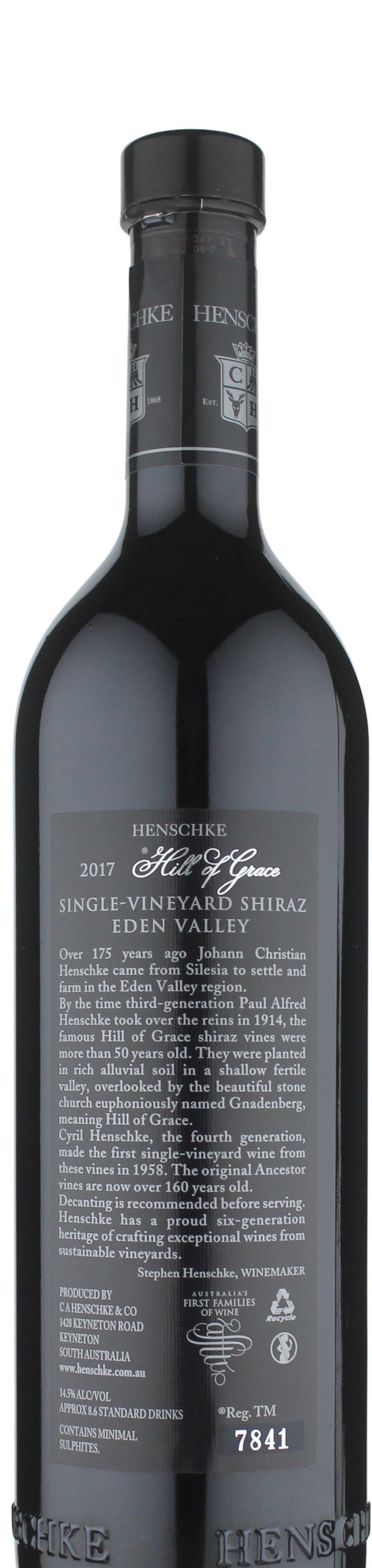 The 2017 Hill of Grace Shiraz offers notes of blueberry skin, crushed granite, essene of cassis, blackcurrant pastille, black tea, hung deli meat, white truffle and mushroom. It is inky, intense, black and dark, with seemingly endless length. The palate is initially sweet, with a real "bottom of the pot" jasmine tea bitterness to the tannins, however, this remains ajunct to the nose, which is decidedly savory. What is clear, is that the old vines shine through the conditions of the vintage; they shine through the hand of Stephen, and they show a density and solidity of texture that young vines achieve through so few hands. This wine was perhaps a touch meatier (not chunky, literally referring to meat/pastrami/deli meats) and more savory than expected. However, it remains a thundering display of line, length and complexity.