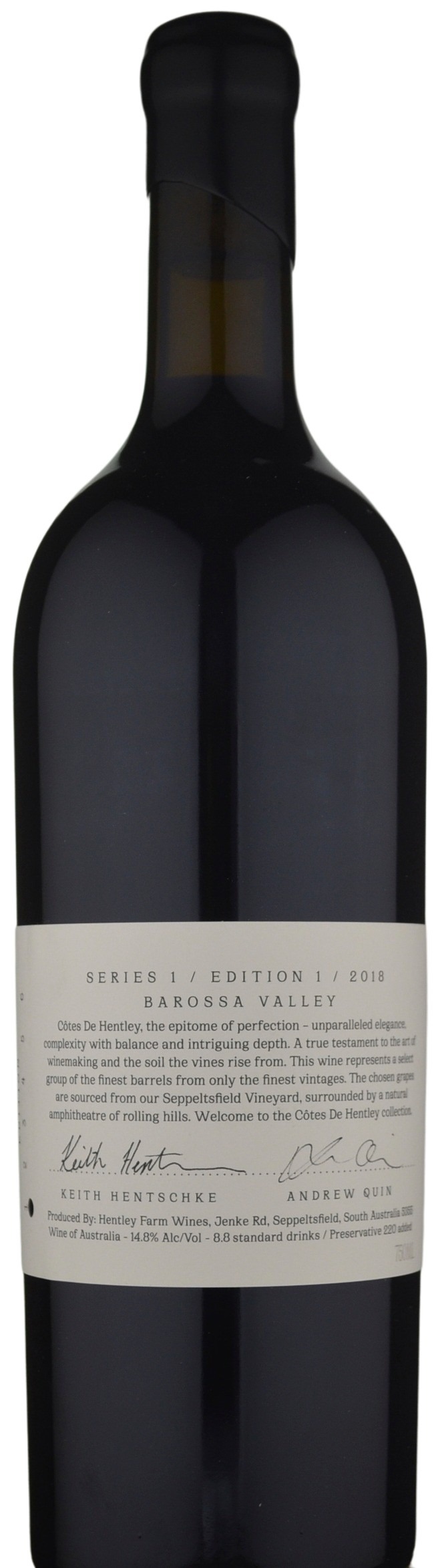 (Series 1, Edition 1) Deep red with vestiges of purple remaining in the rim; the bouquet shows sweet raspberry jam, mulberry and cassis aromas, the fruit driving it, while the palate is very powerful, full bodied and firm, with masses of tannins that coat the mouth and firm the finish, adding to its length and drive. Oak is evident but well in check. An unusual style for a flagship red wine thanks no doubt to the eclectic varietal mix. The price is startling.