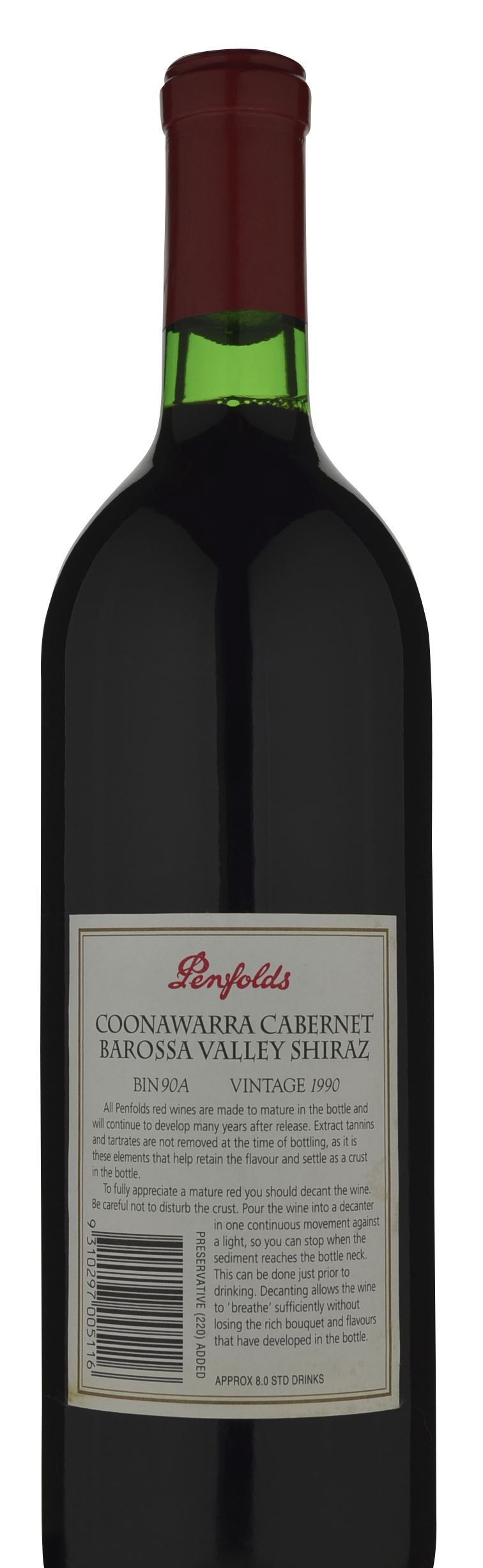 A new wine for me, the 1990 Cabernet/Shiraz Bin 90A is another impressive wine, although I did not think it justified the lofty $100+ price tag. While I preferred the Bin 707, the Bin 90A is an outstanding wine with a deep, saturated ruby/purple color, and a smoky, roasted herb, blackcurrant, jammy-scented nose. Thick, rich, and full-bodied, with elevated tannin, this spicy, boldly-styled wine will drink well for 15-20 years. Importer: PWG Vintners, USA, Inc., Monterey, CA; tel. (408) 655-4848Source: Robert Parker (Wine Advocate) April, 1997 by Robert Parker