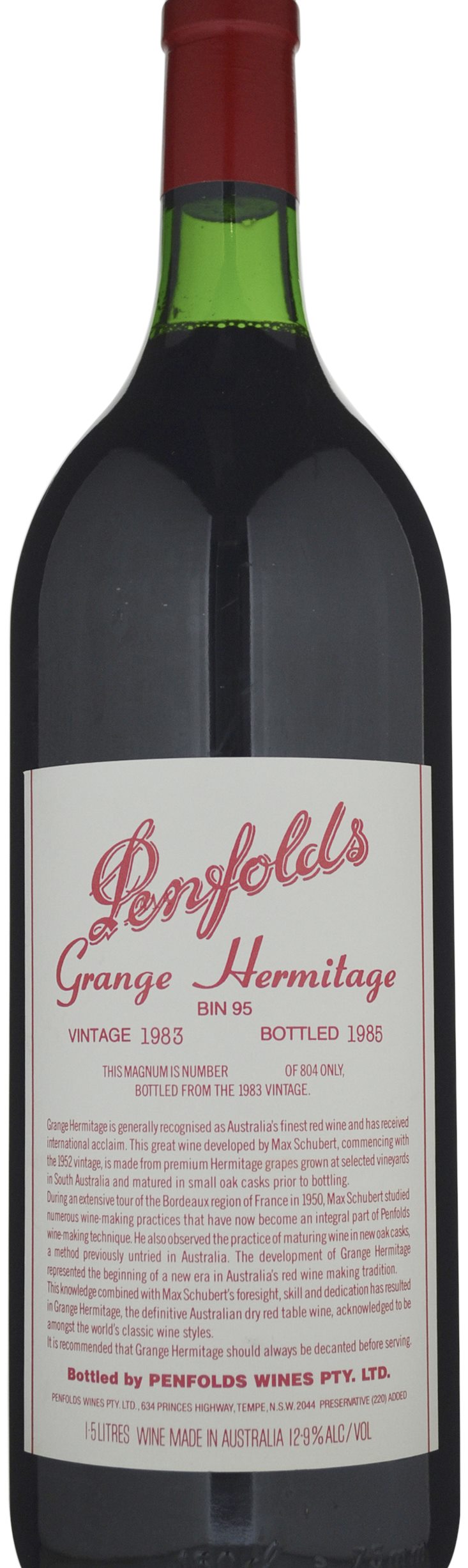 The earliest harvest on record at Penfolds, the 1983 vintage was characterized by devastating bush fires, followed by enormous flooding in March. A blend of 94% Shiraz and 6% Cabernet Sauvignon, the wine has a surprisingly low pH (3.41) for a Grange, with an amazing 7.1 grams of acid per liter. The wine still shows considerable tannin in its flavors, but enormously powerful, rich, high acid characteristics. It is somewhat of a paradox to taste. Five years ago, it was exhibiting huge, powerful, concentrated flavors, but also high acid and high tannin. The wine seems very youthful, very backward, and still in need of at least another 4-5 years of cellaring. Whether it will all come together in a seamless classic remains open to conjecture. Anticipated maturity: 2006-2020.