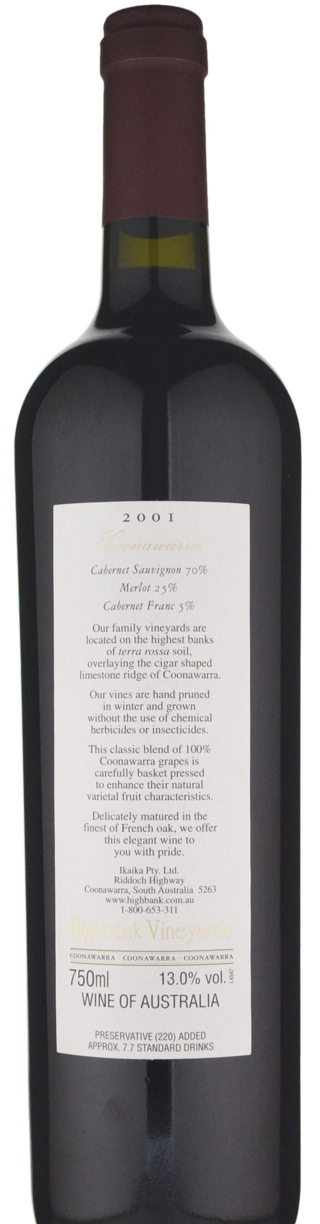 Highbank Vineyards Basket Pressed Cabernet Blend 2001 Gifts » from $49.90 | Aus-wide