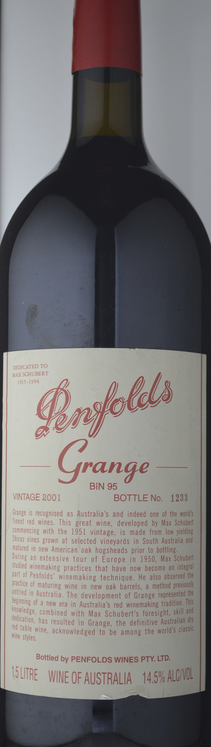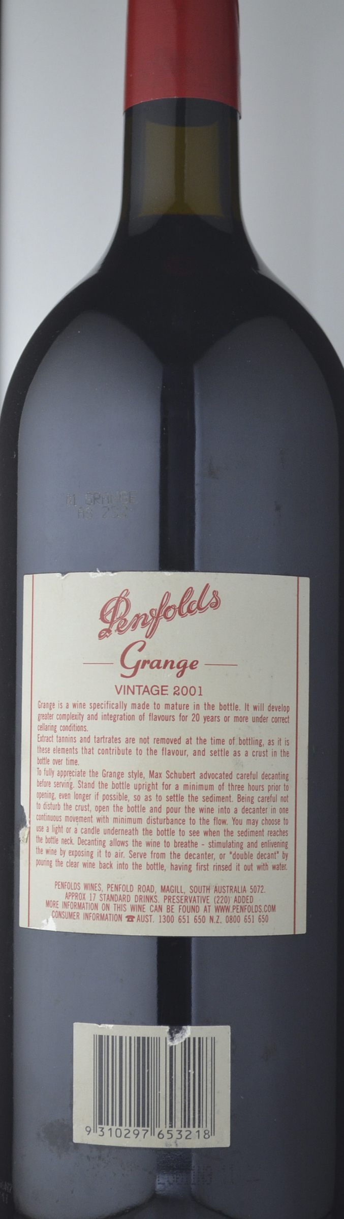 RP 98+ points: It is always a treat to taste Australia’s most famous wine, Penfolds’ Grange cuvee (the word Hermitage has been dropped because of legal issues). The 2001 Grange is one of the few vintages of this cuvee to be composed of 100% Shiraz (the others being 1951, 1952, 1963, 1999, and 2000). Aged 17 months in 100% American oak, and tipping the scales at 14.5% alcohol, the 2001 is undeniably one of the top examples of this wine. At this stage, it appears to eclipse the 1998 and 1996. Inky/blue/purple to the rim, with a stunning perfume of blueberries, blackberries, chocolate, graphite, and earth, it boasts good acidity, huge tannins, magnificent concentration, and a multilayered, textured mouthfeel. It is a big, but impeccably well-balanced Shiraz that should shed some of its structure and tannin over the next 4-5 years, and be at its best between 2010-2030+.