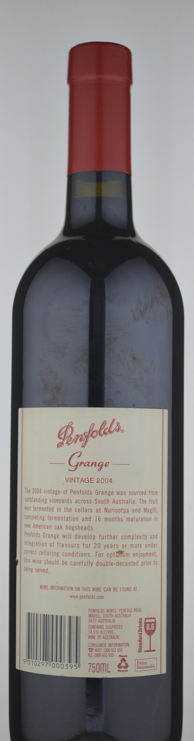 The 2004 vintage was outstanding in Barossa, McLaren Vale, and Magill, the regions where the grapes were sourced for the marvelous 2004 Grange. It contains 4% Cabernet Sauvignon and was aged for 16 months in 100% new American oak hogsheads. A glass-coating opaque purple color, it displays a superb nose of wood smoke, Asian spices, incense, game, blueberry, and blackberry liqueur. Medium to full-bodied, satin textured, with deeply layered, succulent blackberry, plum, and chocolate flavors, it has the structure and complexity to merit extended cellaring of a decade and more. The winery estimates a drinking curve of 2016 to 2050; I'd be a bit more conservative on the long end of the range. It will ultimately be seen as one of the great vintages of Grange.