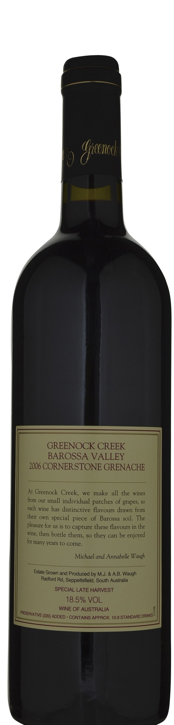 The opaque purple 2006 Cornerstone Grenache, sourced from a 63-year-old vineyard, was aged in a mix of new and used French oak hogsheads. It offers up an alluring bouquet of mineral, leather, and wild cherry leading to a full-bodied (18.5% alcohol), super-rich wine with no hard edges. Opulent and pleasure-bent, it could be likened to a great vintage of Henri Bonneau Chateauneuf du Pape on steroids. Drink it over the next 10-15 years.