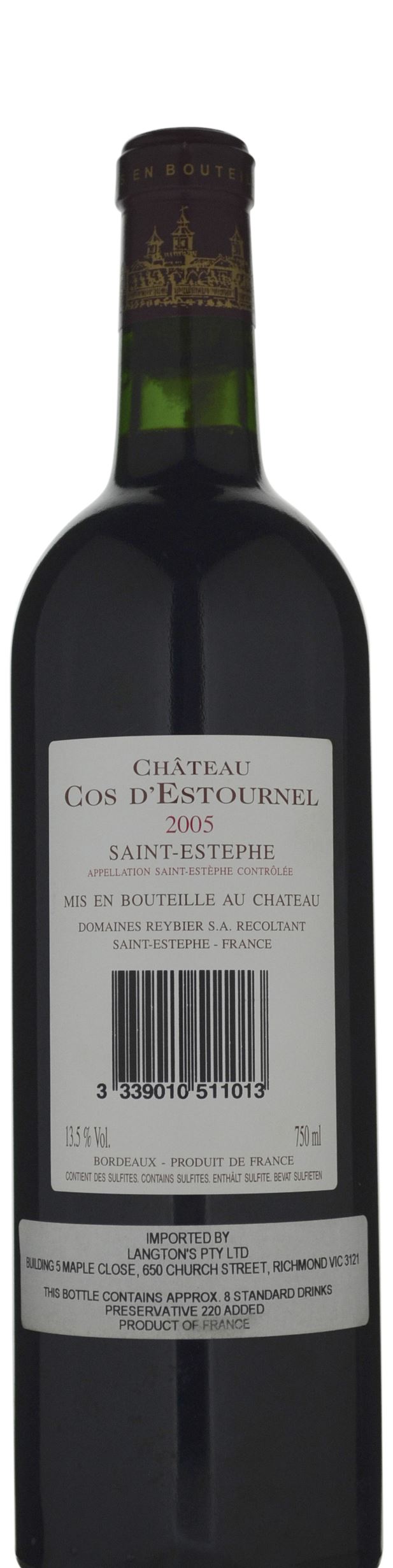 The 2005 Cos d'Estournel is blended of 78% Cabernet Sauvignon, 19% Merlot and 3% Cabernet Franc. Deep garnet colored, it is still a little closed and youthfully shy. With coaxing, the nose is just beginning to offer glimpses at vivacious kirsch, red roses, violets, licorice and mocha scents over a crème de cassis, blackberry pie and chocolate-covered cherry core with wafts of chargrill, mossy bark and truffles. Full-bodied, concentrated and wonderfully complex in the mouth, the palate is just beginning to reveal the true potential of this wine, with tightly wound layers of perfumed black fruits and earthy notions bound by a rock-solid frame of firm, grainy tannins and finishing with epic persistence. This still needs 5-6 years, but I love how this beauty is shaping up!!