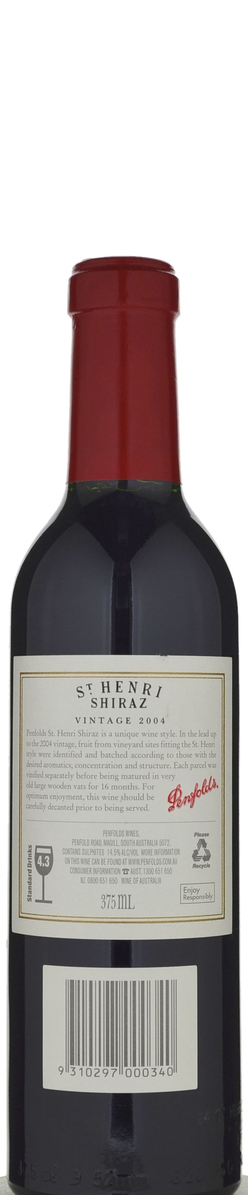 The 2004 St.-Henri Shiraz was sourced from five regions and aged in seasoned oak. Purple-colored, the nose gives up aromas of smoke, game, Asian spices, blueberry, and blackberry. Smooth-textured on the palate, it is nicely layered with savory fruit, lots of spice, and enough stuffing to evolve for 3-5 years. This lengthy effort will be in its prime from 2012 to 2022. Source: Robert Parker (Wine Advocate) February, 2009 by Jay Miller