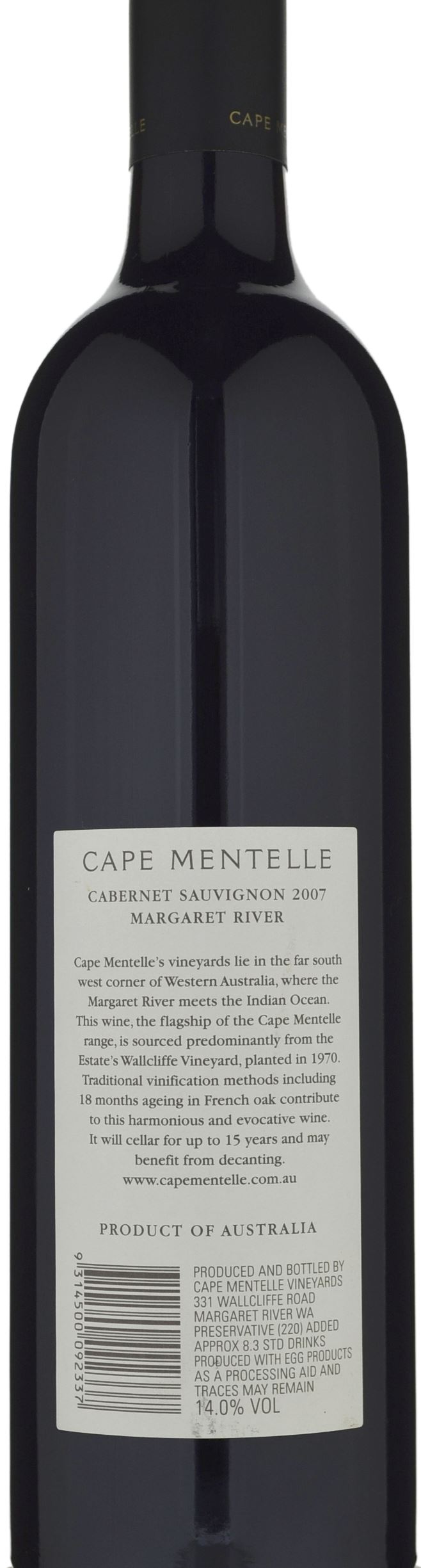 Very deep garnet-purple in color, this 2007 Cabernet has intense aromas of warm blackberries, cassis, bay leaf, cloves, cinnamon and dusty earth. Full bodied and rich in the mouth, it has a medium-firm level of fine tannins and a long finish.Source: Robert Parker (In Asia) January, 2011 by Lisa Perrotti-Brown
