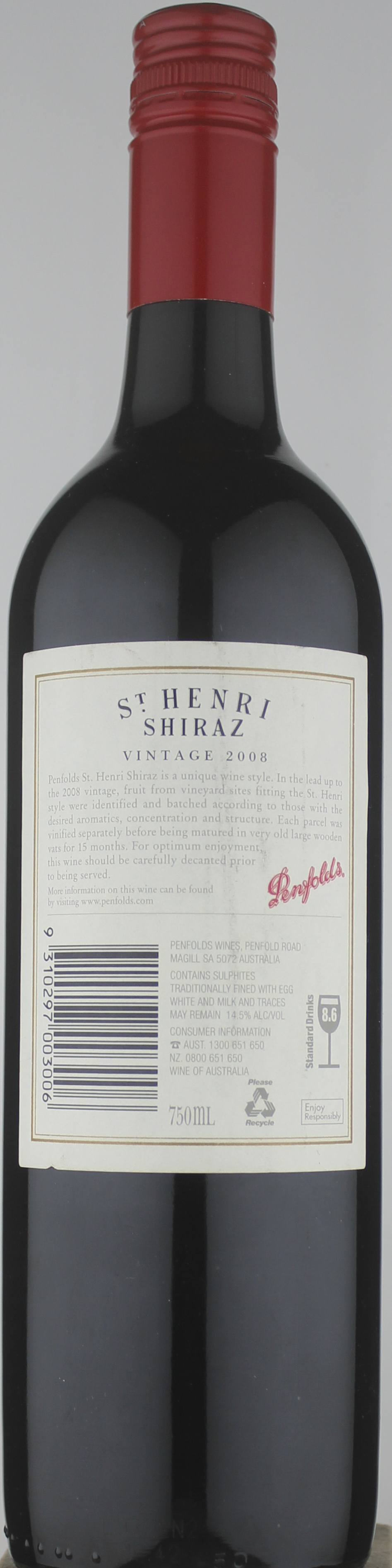 There is an immediacy to the vibrant and ripe fruit core of 2008 St Henri that makes it particularly enticing. The finest vintage since 2005 may prove to rank among the greats, certainly for the enjoyment it affords in the medium-term, even if it doesn’t qualify among the longest-lived. Hints of soy and dark chocolate, balsamic and black olives linger with great presence and persistence. Tannins are admirably fine, yet in no way timid, providing great structural assuredness and textural definition. 91% shiraz and 9% cabernet from Barossa Valley, McLaren Vale, Langhorne Creek, Adelaide Hills, Wrattonbully and Clare Valley, vinified exclusively in large 1500L vats more than fifty years of age. Drink 2018 - 2028.