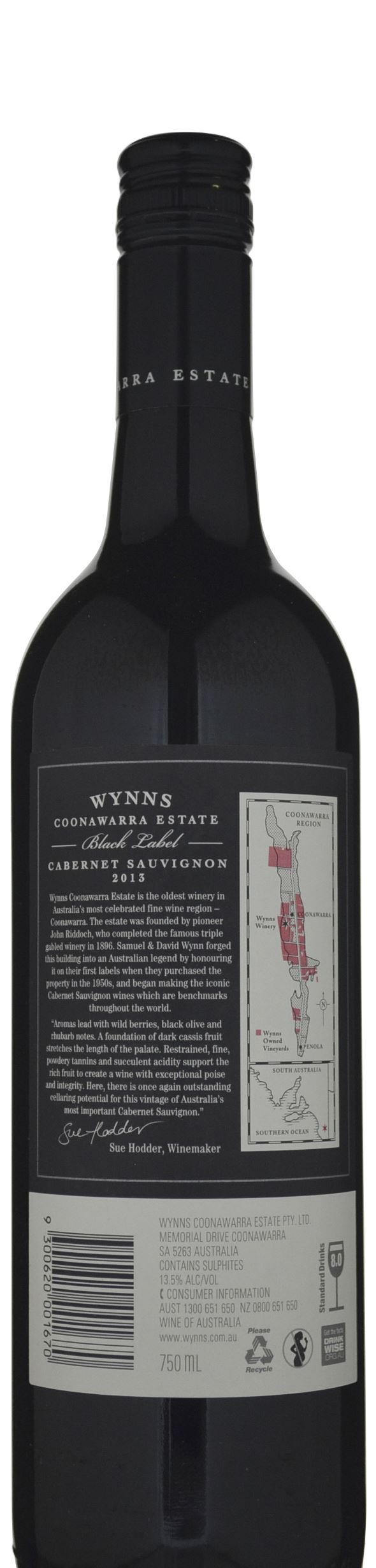 Deep garnet-purple colored, the 2013 Black Label Cabernet Sauvignon offers a classic nose of cassis, black plums and blackberries with cedar, cloves and menthol nuances. Medium-bodied, fine, elegant and bursting with energy, it has beautifully grainy tannins framing the fruit and great length.