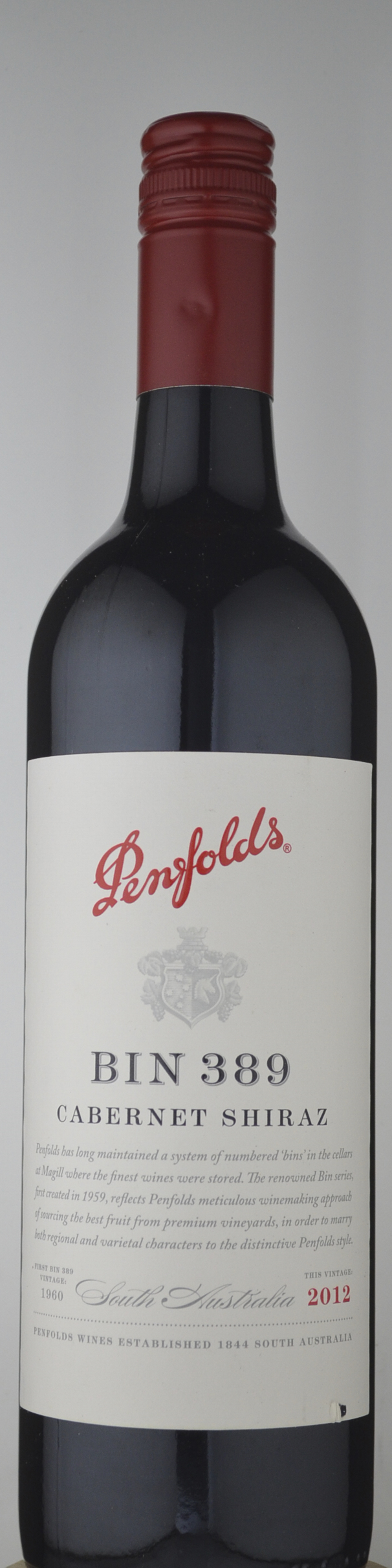 Deep red with a good purple tint; the aroma is well integrated with nothing standing out: nicely balanced spice and berry, smoke and toasty-barrel touches, earth and dark-plum and traces of black pepper. The palate is intense and full-bodied, with a good degree of elegance but also plenty of trad Penfolds bite and grip. A superbly rich, balanced and rounded wine; a complete item, and an outstanding Bin 389. The finish rolls on and on.